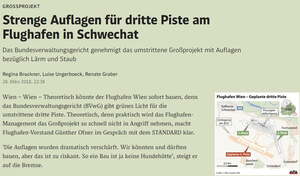 Vana in der Presse (Standard) zur Genehmigung der 3.Piste durch das Bundesverwaltungsgericht